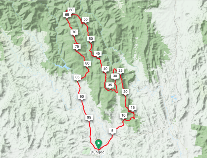 A 102km challenging loop ride from Dungog back to Dungog Trevor Tops and Mountaineer.